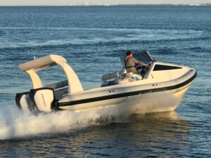 Łódź hybrydowa RIB, otwarta, wyposażona w 2-3 osobową kabinę, o podwyższonym pokładzie oraz podniesionych tubach, na pokładzie mogą być zamontowane fotele typu JOKEY lub JOKEY plus kanapa i stolik. W przypadku zastosowania łodzi dla służb ratunkowych (np. motorówki WOPR) kabina łodzi zamiast miejsc leżących może być wyposażona w ławki. Dodatkowo w kabinie może być zainstalowane ogrzewanie dzięki czemu może pełnić funkcję pomieszczenia dla rozbitków ochraniając ich przed wychłodzeniem. Łódź może być wyposażona w max dwa zbiorniki paliwa o pojemności 200 lit(GHOST 900 OPEN 2×300 lit.)co  zapewni duży zasięg. Wysoka konsola/kabina dobrze osłania sternika przed warunkami atmosferycznymi zapewniając przy tym dobrą widoczność. Wysoki dziób łodzi zabezpiecza przed wbijaniem się łodzi w wysoką falę dzięki czemu można uniknąć zalewania pokładu łodzi wysoką wodą. Łódź może byc wyposażona w profesjonale fotele typu ULMAN zapewniające wysoki komfort podczas pływania w trudnych warunkach atmosferycznych. Laminatowe burty wewnątrz pokładu zabezpieczają